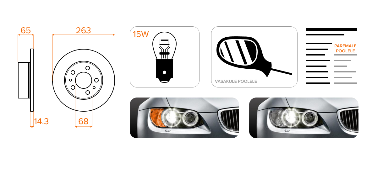 Tootekirjeldus võib märkida, et toode on mõeldud spetsiifilise pidurisüsteemi või sõiduki spetsiifilise trimmitaseme jaoks. Palun pange seda infot tähele, sest sellise osa tehnilised näitajad võivad erineda teile vajaliku osa omadest.