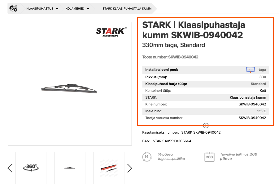 Toote kirjelduses on ka toote foto. Siiski on see ainult illustratiivne ning ei anna toote kohta täpset infot.
