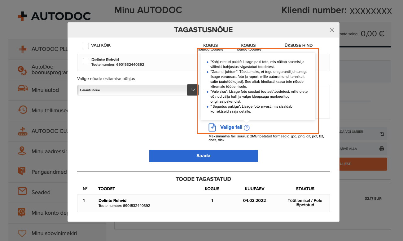 Tagastusnõude esitamiseks järgige allpool kirjeldatud samme: