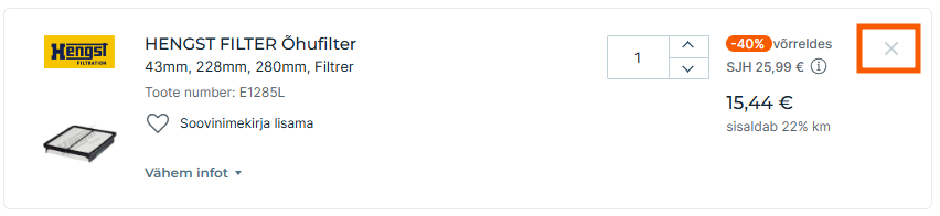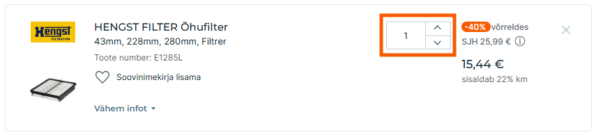 Oluline: teatud kategooriate* puhul lisatakse tooted ostukorvi automaatselt paarikaupa