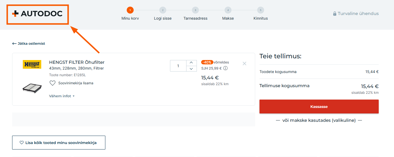 Oluline: tarneriik peab vastama kasutatud veebilehe keelele. Näiteks kui sa soovid tellida tooteid Ühendkuningriiki, siis pead sa kasutama veebilehte autodoc.co.uk. Vastasel juhul pole võimalik teatud tootekategooriad (nt suured tooted) tarnida.